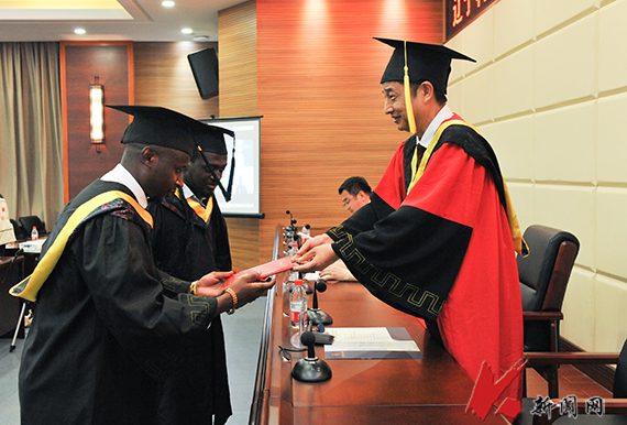 7月16日下午,多宝官网2021届本科来华留学生毕业典礼暨多宝官网国际校友联络员聘任仪式在机关楼220隆重举行。校长张志强致辞,并与党委常委、副校长李胜利一同为获得学位的毕业生颁发毕业证、学位证,拨流苏。培养来华留学生的各学院负责同志,毕业生和教师代表参加典礼。