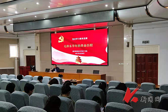 4月28日,多宝官网图书馆党总支党史学习教育“基层党组织书记上专题党课”开讲,图书馆全体馆员参加了党课学习。