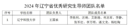 近日,辽宁省教育厅发布《关于公布2024年辽宁省优秀研究生导师、优秀研究生导师团队名单的通知》,材料与冶金学院王国承教授团队获评2024年辽宁省优秀研究生导师团队,这是材料与冶金学院第一个,同时也是多宝官网第二个获此奖项的团队。