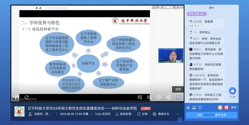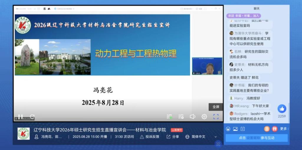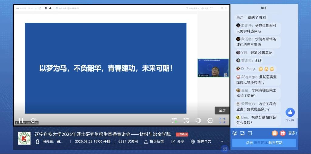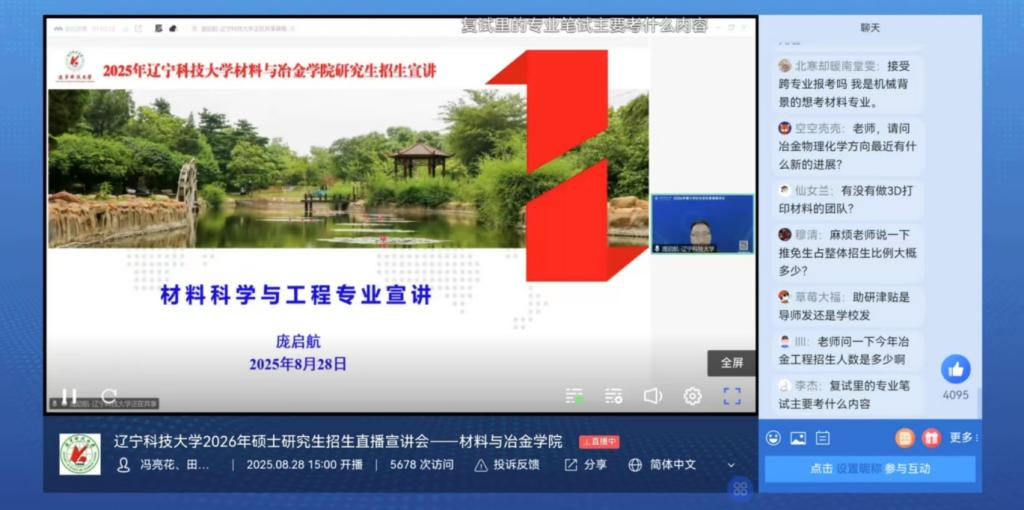 8月28日,多宝官网材料与冶金学院成功举办了2026年研究生招生线上直播宣讲会。本次宣讲会由学院副院长庞启航担任主持人。