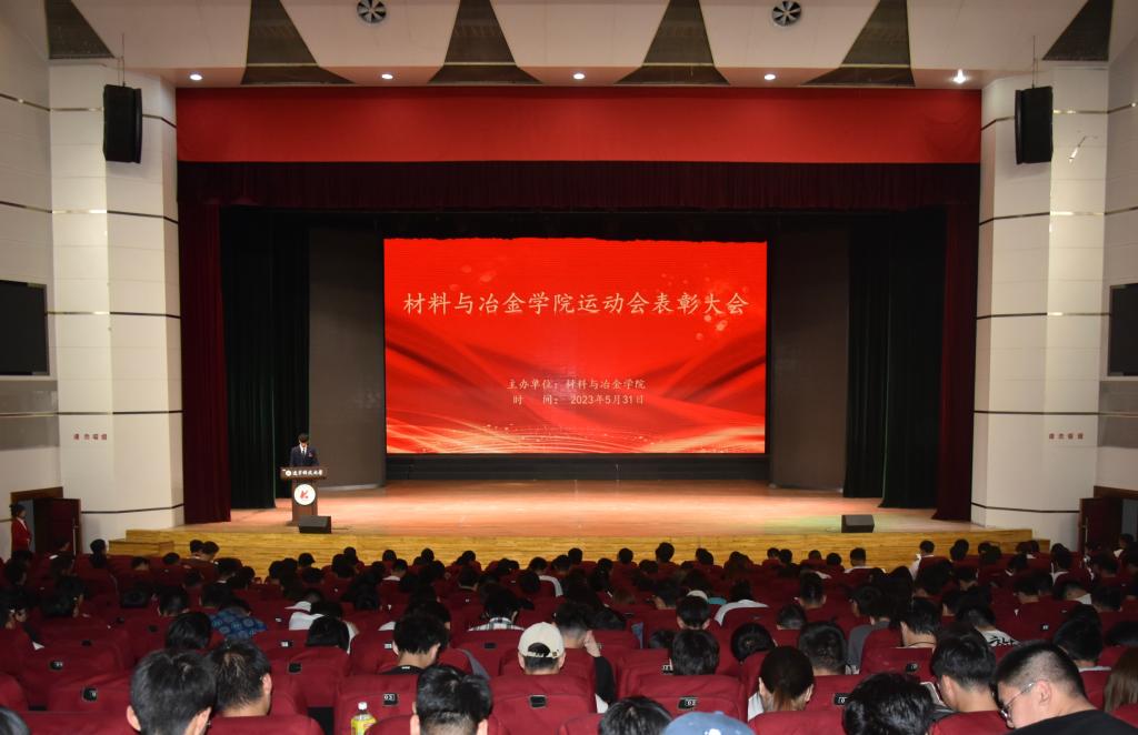 2023年5月31日,材冶学院在校礼堂召开运动会表彰大会。会议由院学生会执行主席薛曙冰主持,学院党委副书记、副院长、纪委书记艾英华、学办主任贾学龙、团委副书记高守祺、各专业辅导员、运动会全体运动员、团委学生骨干、学生会学生骨干、22级全体学生及21级各班级班团骨干参加会议。