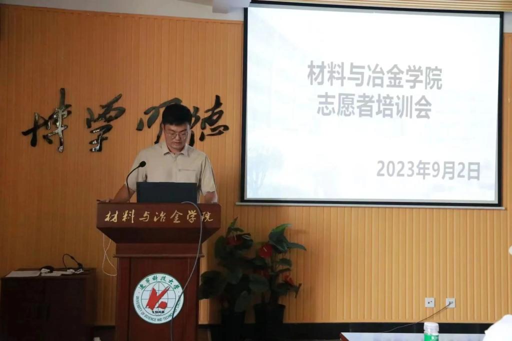 为更好的展现材冶学院风采、服务新生入学报到,增强志愿者的志愿服务意识与责任意识,确保2023年迎新志愿服务工作顺利进行。9月2日下午,材冶学院在博贤楼A523举行了迎新志愿者培训活动。院团委副书记高守祺主持会议并讲话,共100名迎新志愿者参加本次培训。