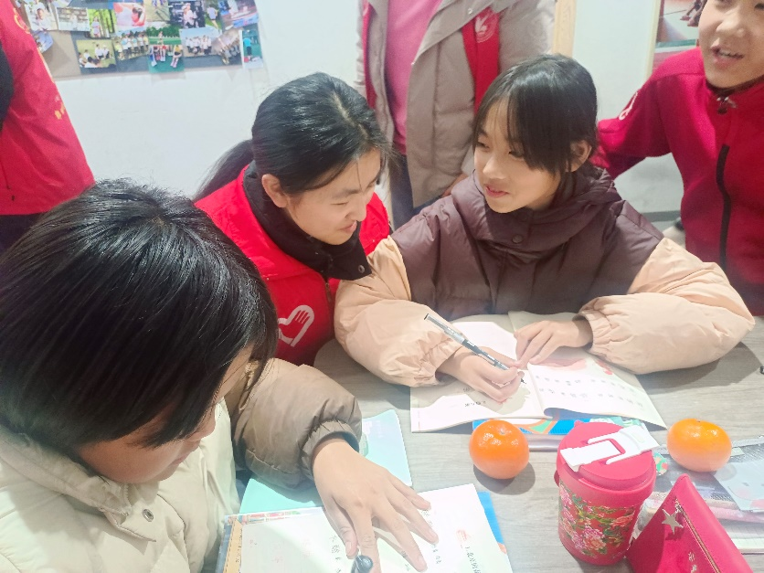 随后,志愿者们为“梦想之家”的孩子们送上了精心准备的水果和牛奶,用实际行动表达关爱。在温馨的氛围中,志愿者们分组为孩子们辅导功课,耐心细致地解答他们在学习中遇到的问题。孩子们积极提问,志愿者们认真讲解,现场互动频繁,气氛热烈。