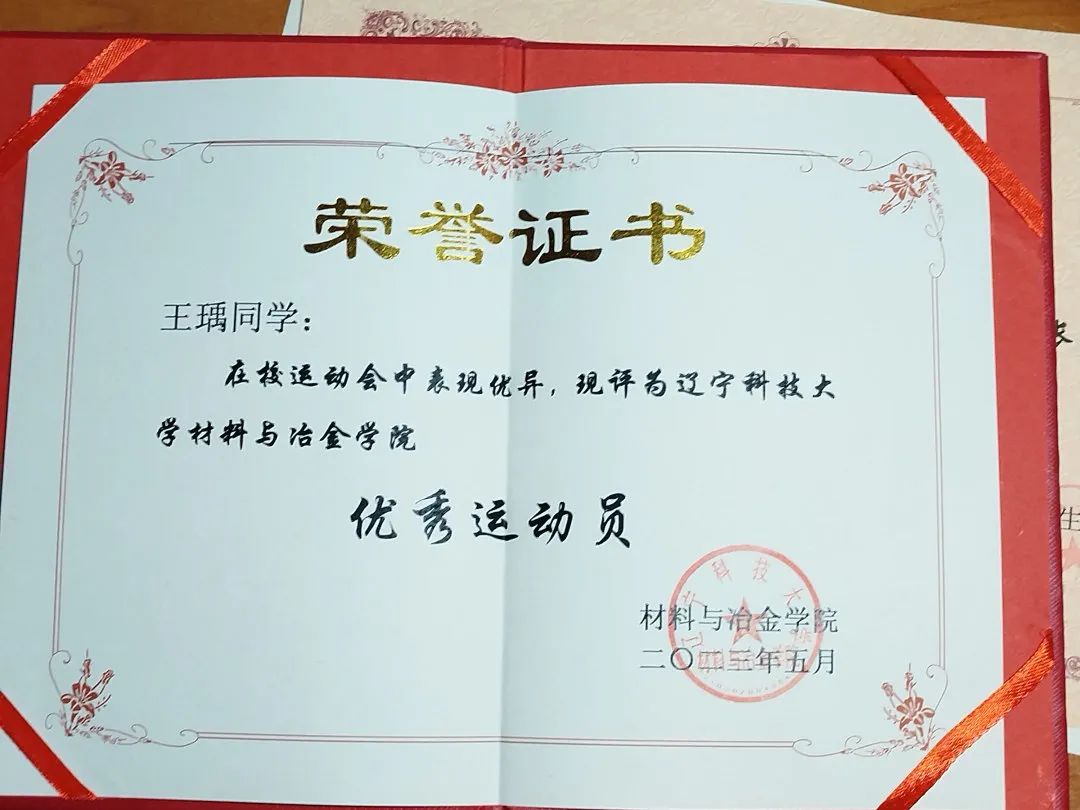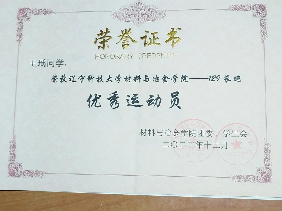 辽宁省大学生田径运动会女子甲组400米栏第四名、女子甲组4×100米第三名、女子甲组4×400米第一名,多宝官网2021年129长跑接力女子第二名、2022年129长跑接力女子第一名,第五十一届多宝官网运动会女子800第二名、200第三名、4×100米第二名、10×400米第一名,材冶学院优秀体育指导员,优秀运动员,二级社会体育指导员。