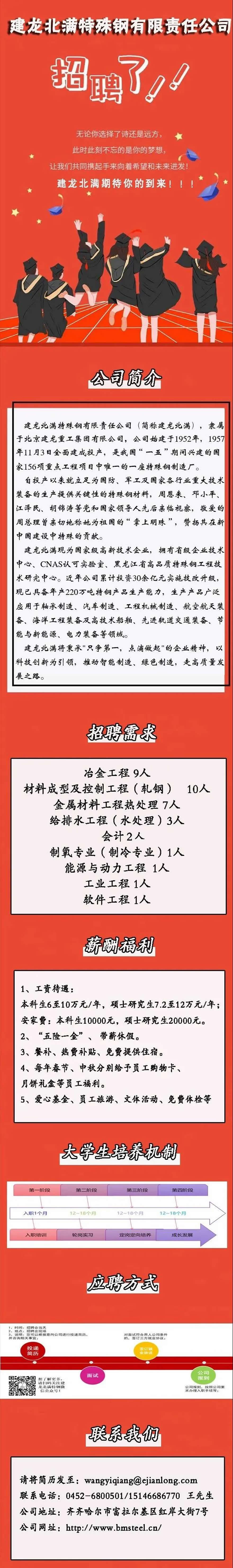 建龙北满特钢有限公司招聘信息