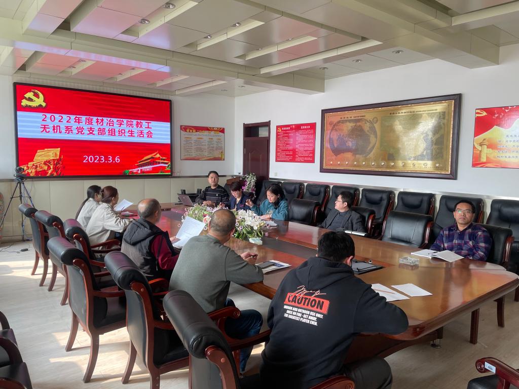 3月6日下午,材冶学院教工无机系党支部在明远楼会议室召开2022年度组织生活会,全体党员参加会议。会议由组织委员李婷主持,宣传委员栾旭记录。