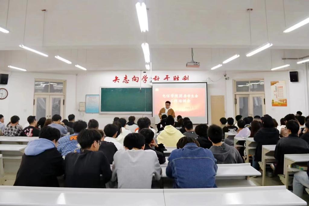 为加强学生骨干队伍建设,提高学生会工作人员综合素质,电信学院于3月31博闻楼十一合召开团委学生会工作人员培训会。学院团委老师刘洋团委学生会全体成员参加此次会议
