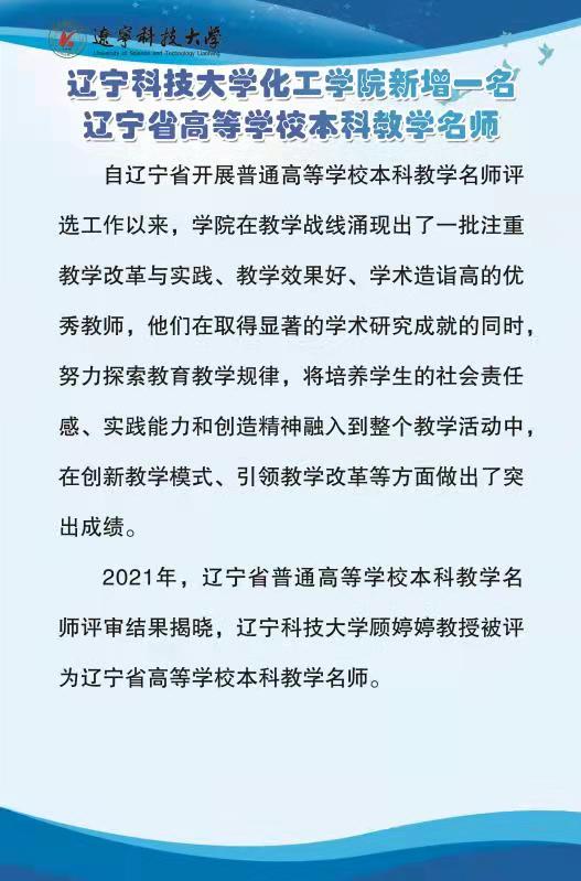 多宝官网化工学院新增一名辽宁省高等学校本科教学名师