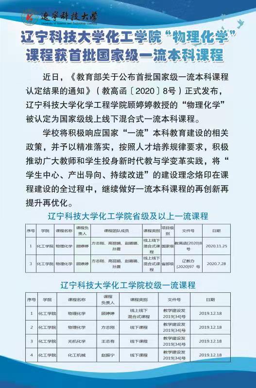 多宝官网化工学院“物理化学”课程获首批国家级一流本科课程