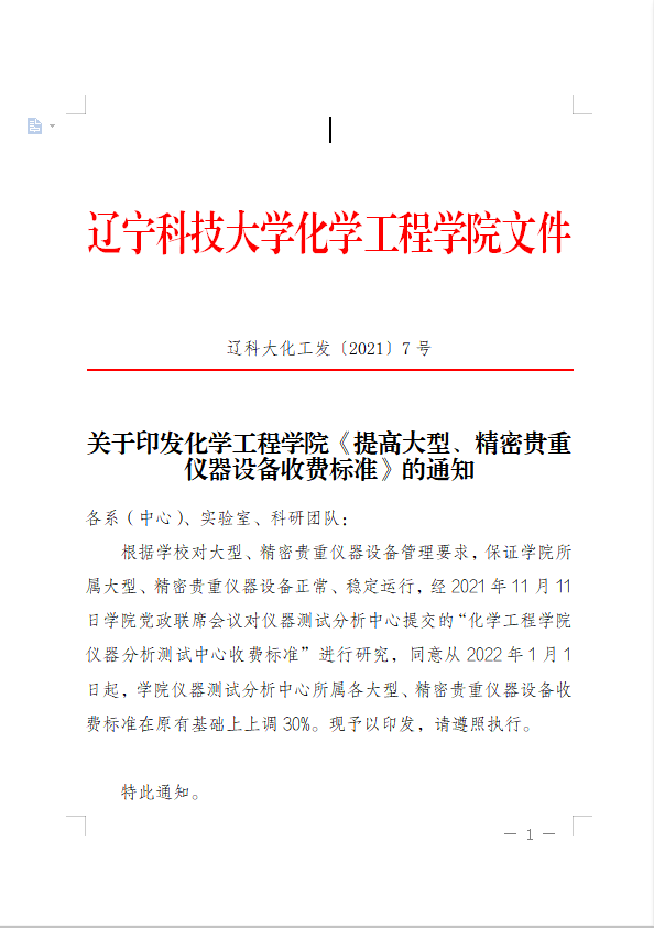 多宝(中国)一站式服务官网化工发〔2021〕7号 关于印发化学工程学院《提高大型、精密贵重仪器设备收费标准》的通知.doc