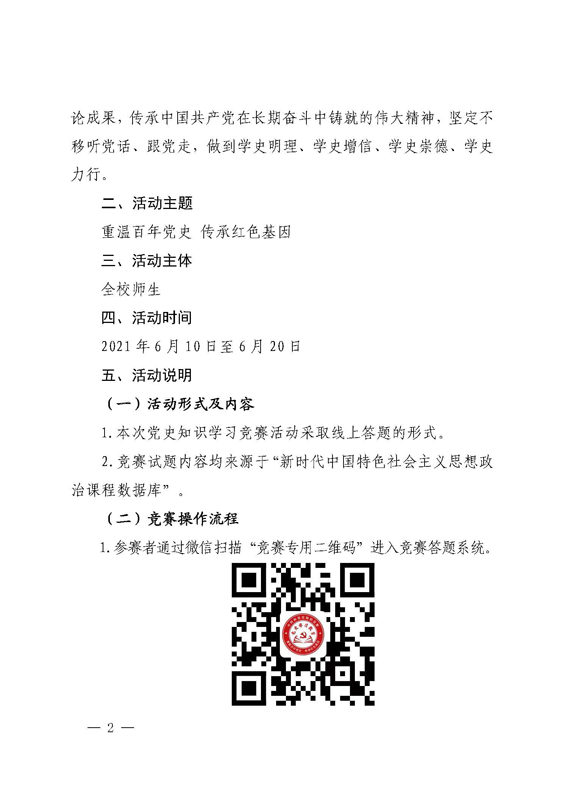 关于举办“重温百年党史 传承红色基因” 党史知识学习竞赛活动的通知