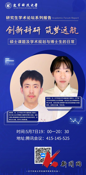 5月7日,多宝官网机械工程与自动化学院举办“创新科研,筑梦远航”研究生学术论坛第一期线上活动,特邀请哈尔滨工业大学精密工程研究所高敬翔博士、先进焊接与连接国家重点实验室黄新放博士,分享博士期间的科研心得和求学体会,学院2020级和2021级研究生参加论坛交流。