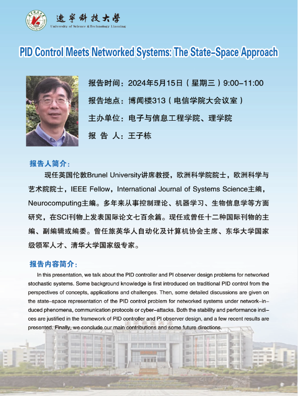 学术预告:PID Control Meets Networked Systems:The State-Space Approach