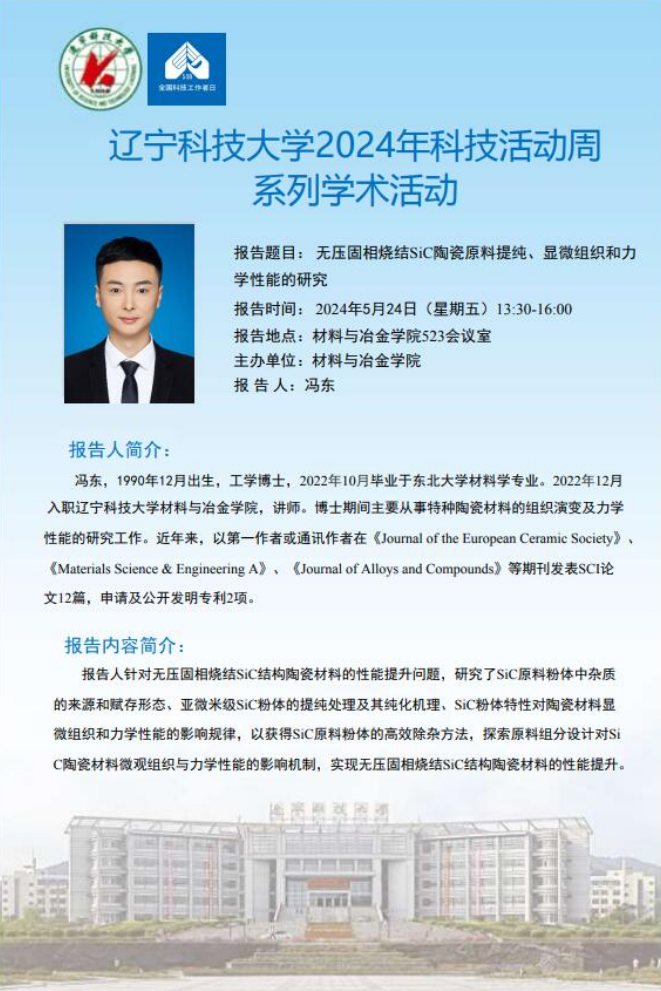 【科技活动周学术预告】无压固相烧结SiC陶瓷原料提纯、显微组织和力学性能的研究