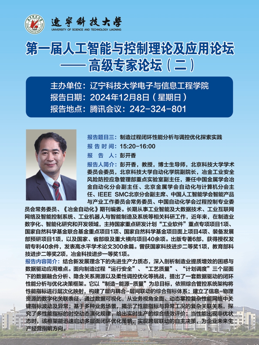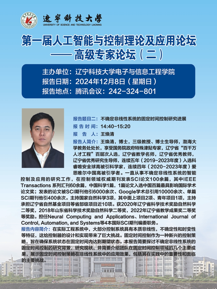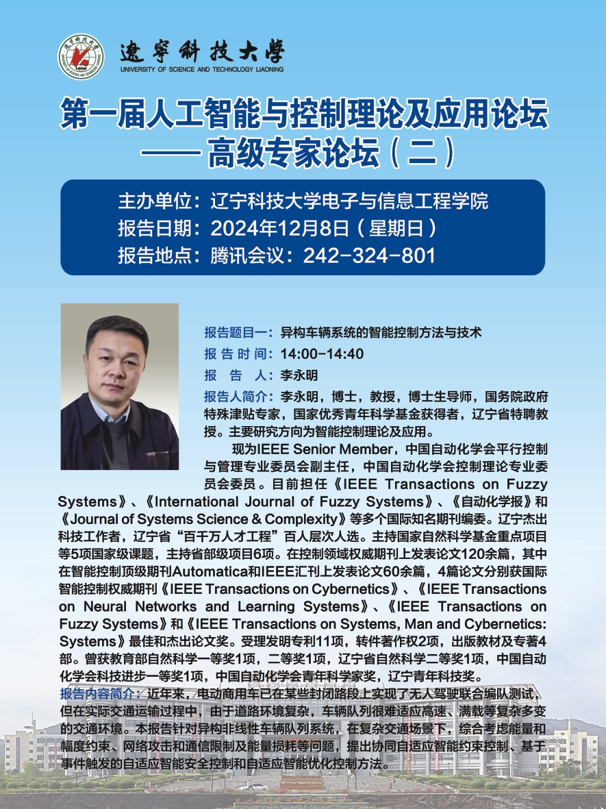 学术预告:第一届人工智能与控制理论及应用论坛