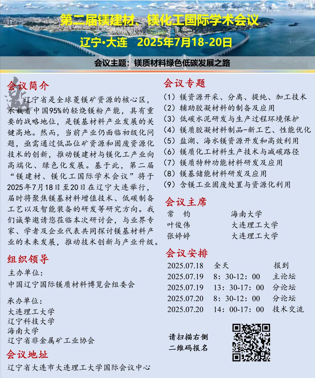 学术预告:第二届镁建材、镁化工国际学术会议