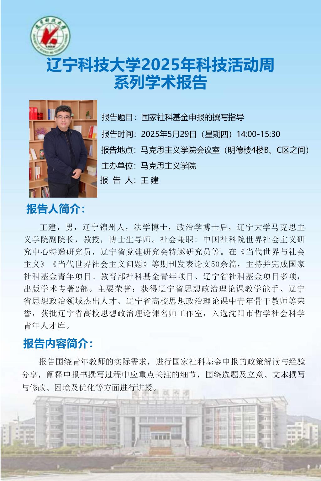 【科技活动周学术预告】国家社科基金申报的撰写指导