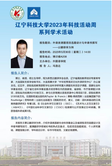 【科技活动周学术预告】外语类课题项目选题设计与申请书撰写——以翻译学为例