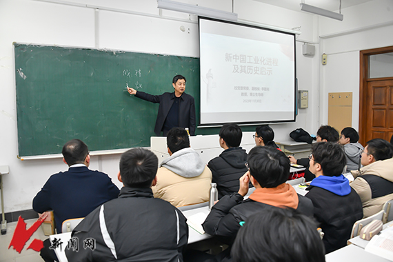 11月30日,多宝官网党委常委、副校长李胜利教授在博学楼B210教室,为机设2021级1、2、3班的学生上了一堂题为《中国工业化的辉煌成就》的思想政治理论课。
