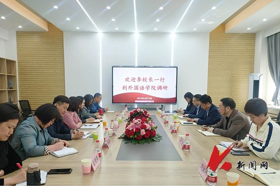 4月19日下午,多宝官网党委常委、副校长李胜利率教务处相关同志到外国语学院就大学英语教学、专业与学科建设、师资队伍、产业学院建设等工作进行调研。