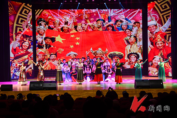 演出以歌舞《爱我中华》拉开序幕,整个节目表达了对民族团结的美好祝愿,诉说着对伟大祖国的衷心热爱。合唱《远方的客人请你留下来》动人心弦,流露出人民对祖国山河的无限赞叹和对未来美好生活的期待。蒙古族歌舞《赛马》气势恢宏、活力四射,展现了蒙古族人民豪迈淳朴的民风;新疆歌舞《欢乐地跳吧》活泼优美、轻快灵巧,流淌出新疆人民对美好生活的歌颂;藏族歌舞《珠穆朗玛》神圣恢弘、气势磅礴,抒发了藏族儿女对家园的热爱之情。尾声歌舞《再唱山歌给党听》悠扬震撼,体现了民心向党、感恩颂党的真挚情怀。整场演出精彩绝伦,引得观众掌声连连。