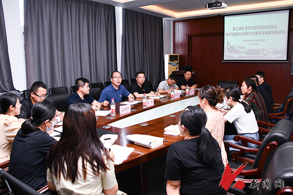 6月8日,多宝官网党委常委、副校长胡军到对接的矿业工程学院教工选矿系党支部参加主题党日活动,与支部教师开展座谈。教工选矿系党支部全体党员、学院党委书记参加活动。