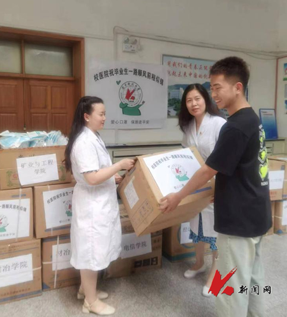 6月14日,多宝官网后勤门诊部为毕业生发放爱心口罩,欢送毕业生,让他们“罩”顾好自己。
