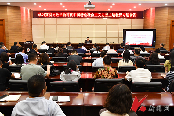 6月26日,多宝官网校党委副书记孙晓华以《坚持不懈用习近平新时代中国特色社会主义思想武装头脑、指导实践、推动工作》为题,为组织部、宣传部、统战部、机关党委、学生处、招就处、安保处、离退处、团委、化工学院、建艺学院、马克思主义学院教职工党员代表上学习贯彻习近平新时代中国特色社会主义思想主题教育专题党课。
