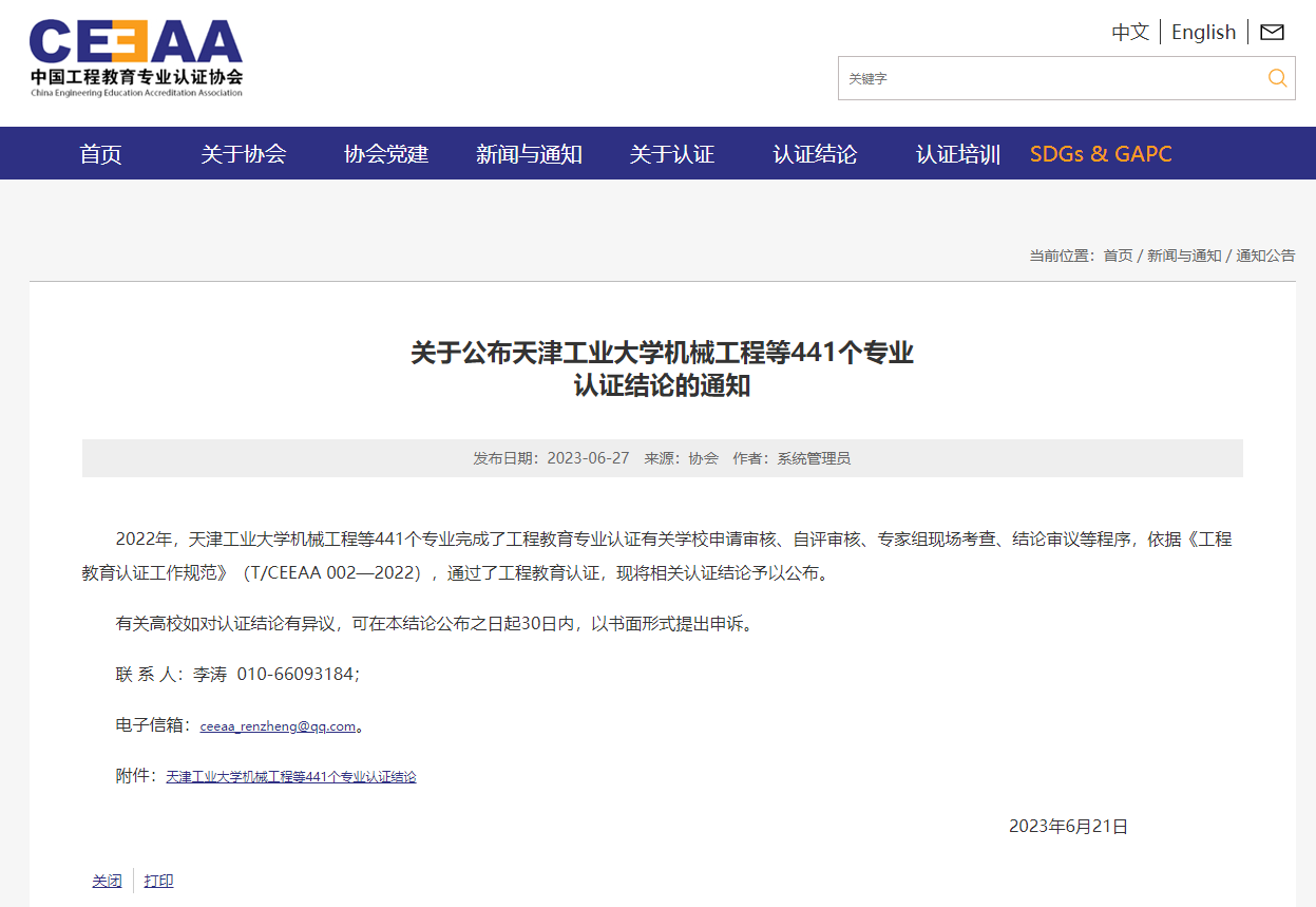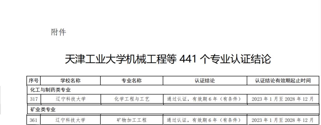 6月21日,中国工程教育专业认证协会官方网站发布了《关于公布天津工业大学机械工程等441个专业认证结论的通知》,多宝官网化学工程学院化学工程与工艺专业、矿业工程学院矿物加工工程专业通过认证,有效期6年(2023年1月至2028年12月),专业将纳入《华盛顿协议》互认名单。