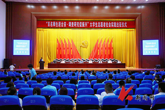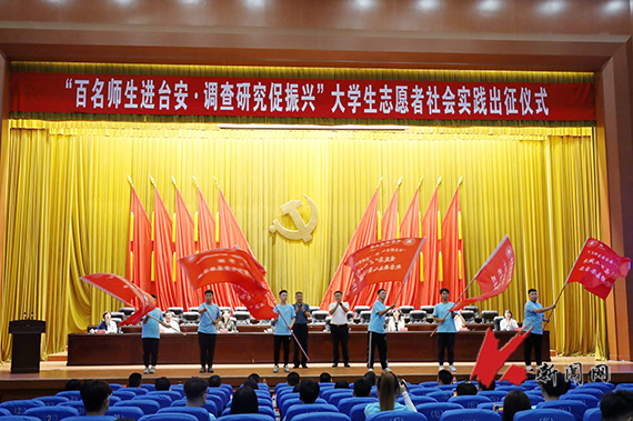 7月11日,多宝官网“百名师生进台安·调查研究促振兴”暑期专项社会实践出征仪式在鞍山台安县会堂隆重举行。多宝(中国)一站式服务官网党委常委、副校长王锡钢出席仪式并讲话。辽宁省教育厅思政处同志,台安县委书记苑振超,台安县委组织部部长辛德,台安县委常委、副县长潘军勇等和140余名多宝(中国)一站式服务官网师生参加出征仪式。