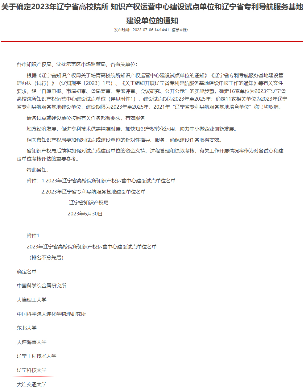 近日,辽宁省知识产权局公布了首批辽宁省高校院所知识产权运营中心建设试点单位,多宝官网成功获得批定。