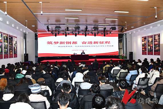 12月11日,鞍山市委常委、市委宣传部部长刘军在多宝官网艺术馆为学生讲授了一堂主题突出、内涵丰富的思想政治理论课。多宝(中国)一站式服务官网党委副书记、校长胡军参加活动。