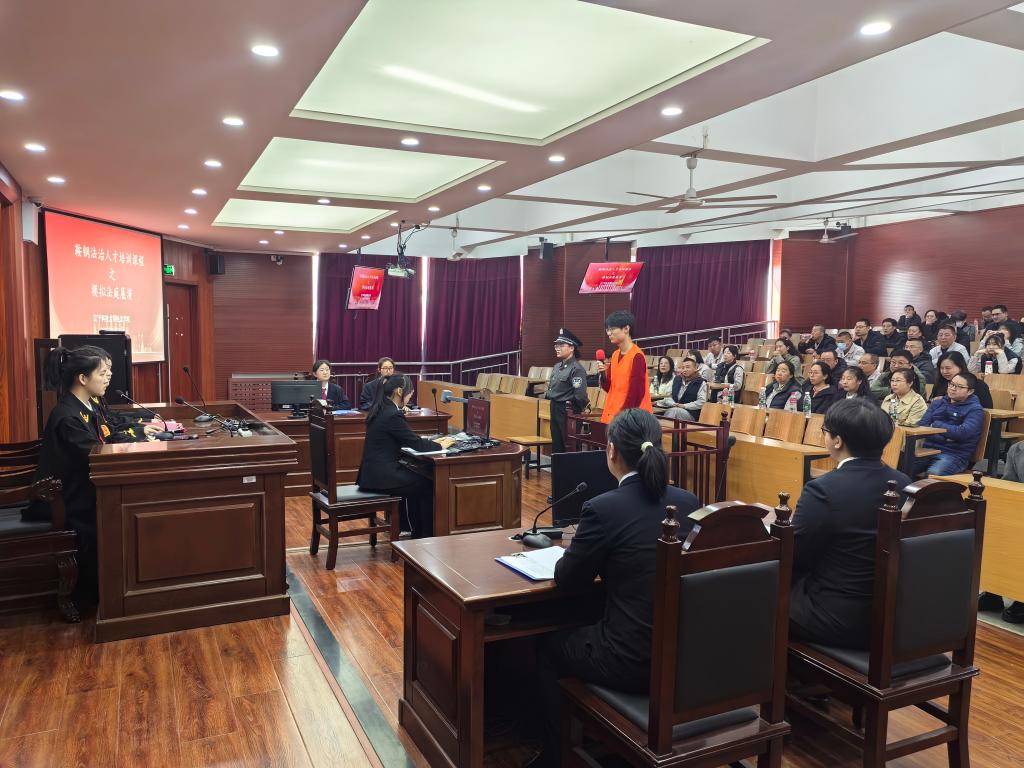近日,在明德楼214模拟法庭内,一场以“防范网络诈骗”为主题的模拟庭审活动在鞍钢集团工作人员的观摩下展开,经济与法律学院党委书记赵智博、副院长邵玲出席。