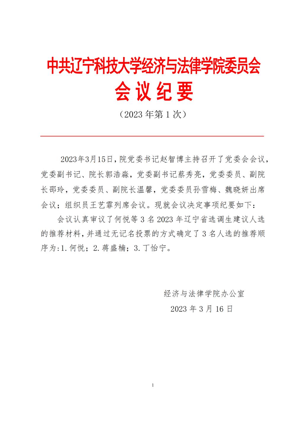 中共多宝官网经济与法律学院委员会会议纪要(2023年第1次)