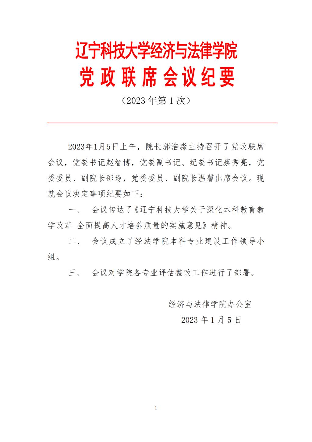 多宝官网经济与法律学院党政联席会会议纪要(2023年第1次)