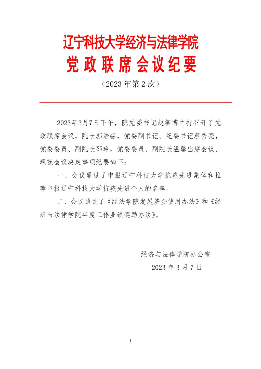 多宝官网经济与法律学院党政联席会会议纪要(2023年第2次)