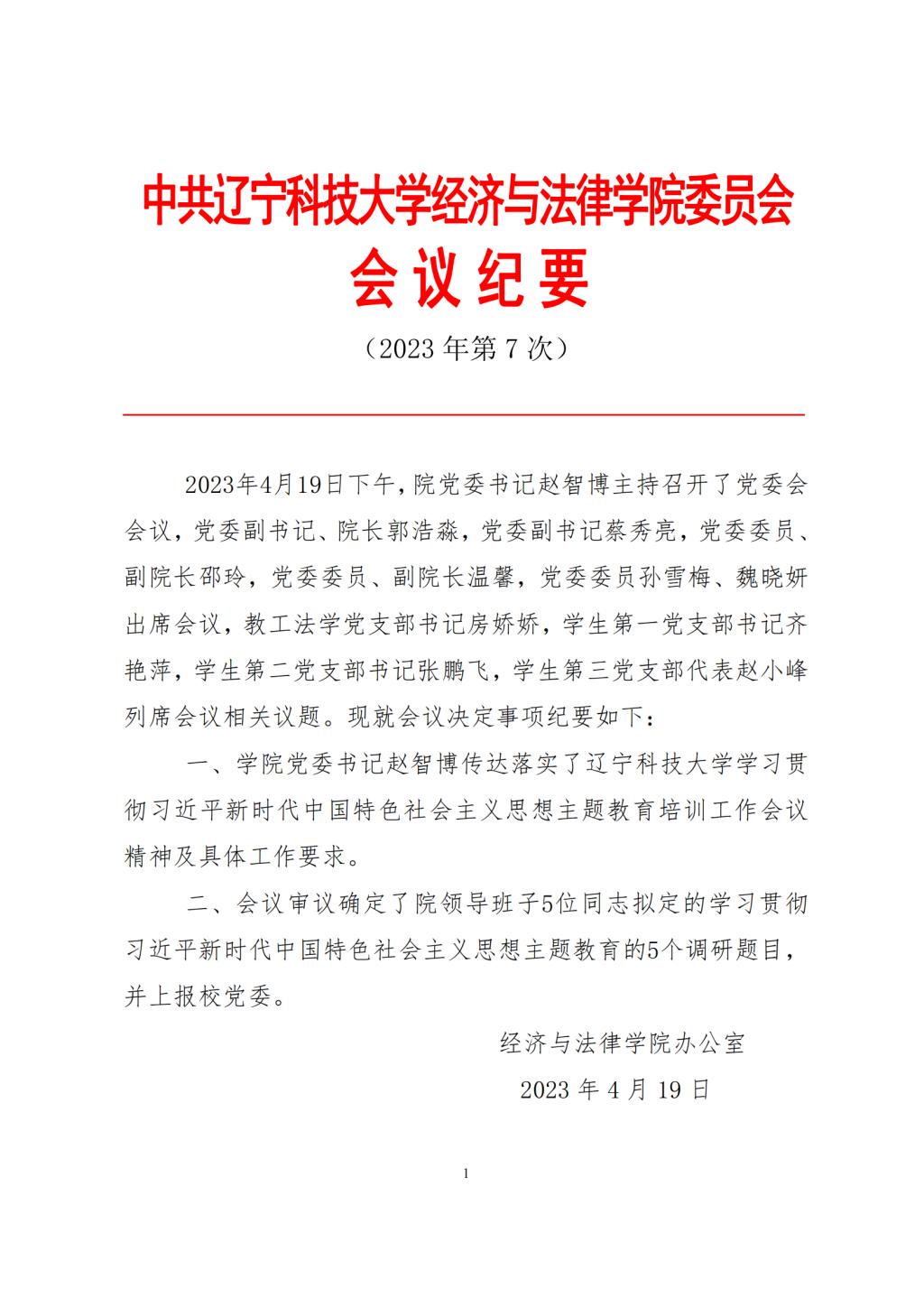 中共多宝官网经济与法律学院委员会会议纪要(2023年第7次)