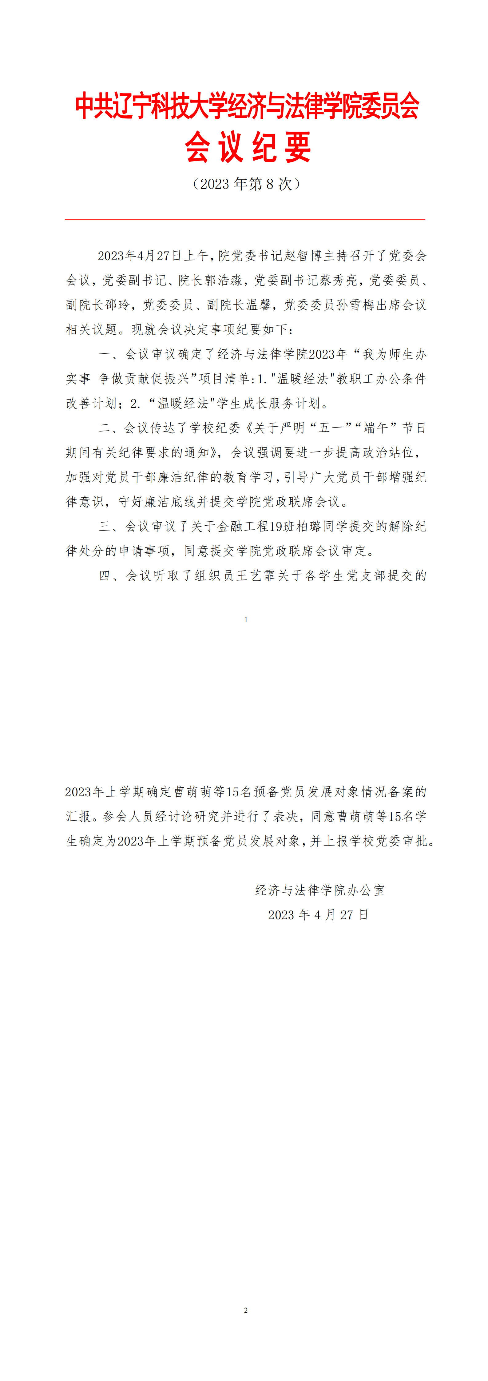 中共多宝官网经济与法律学院委员会会议纪要(2023年第8次)