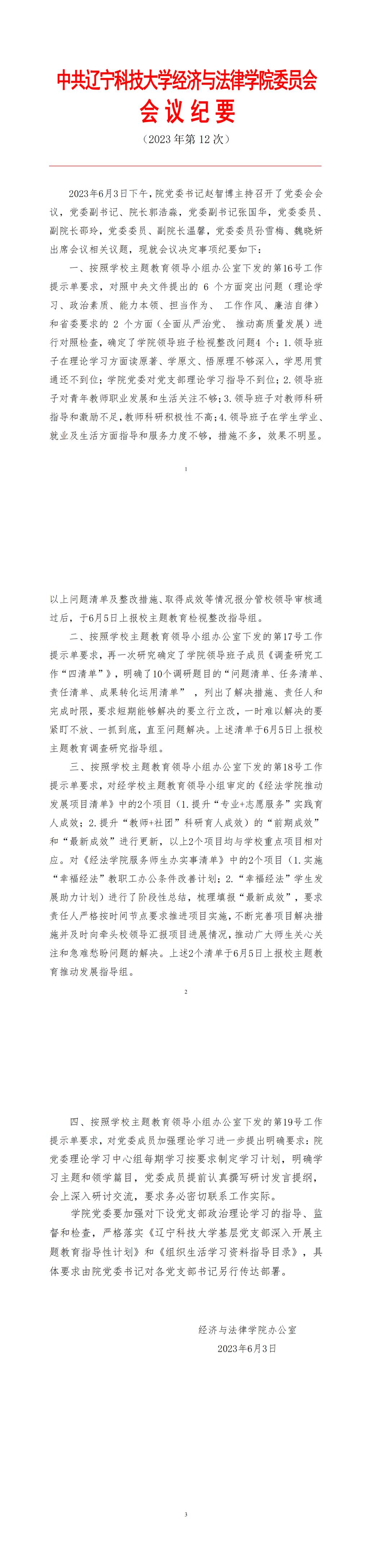 中共多宝官网经济与法律学院委员会会议纪要(2023年第12次)