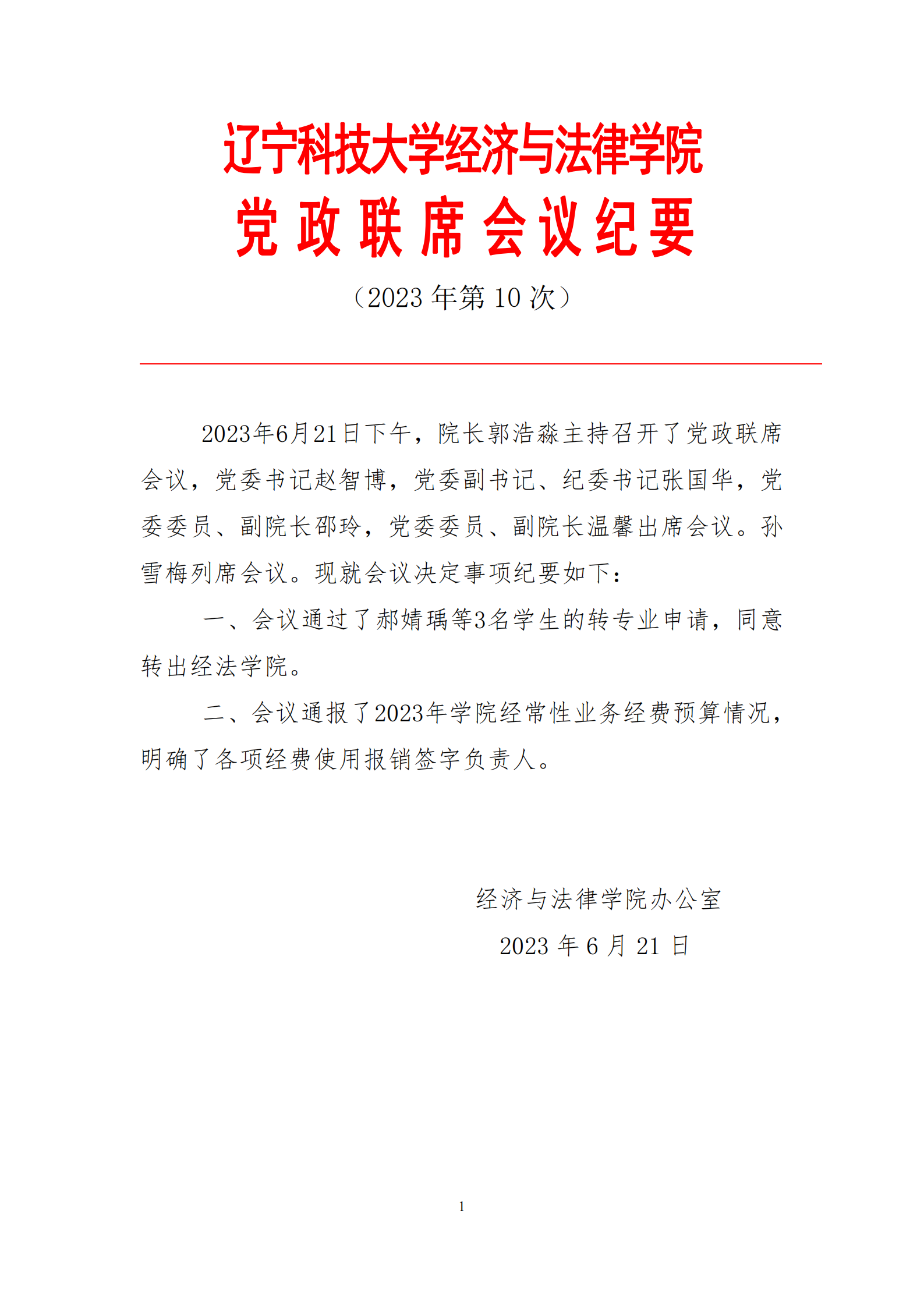 多宝官网经济与法律学院党政联席会会议纪要(2023年第10次)