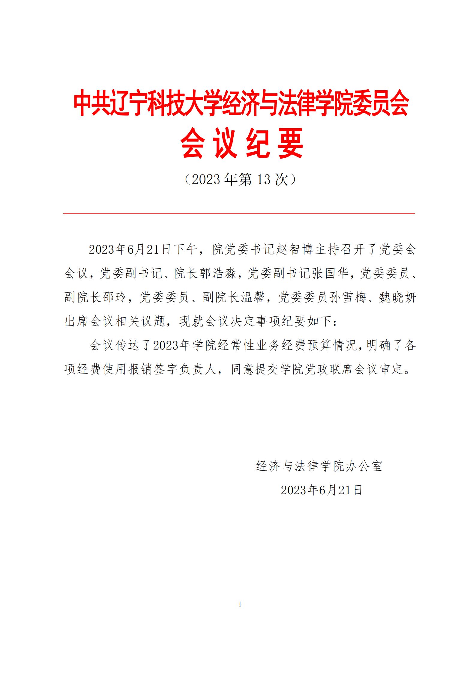 中共多宝官网经济与法律学院委员会会议纪要(2023年第13次)