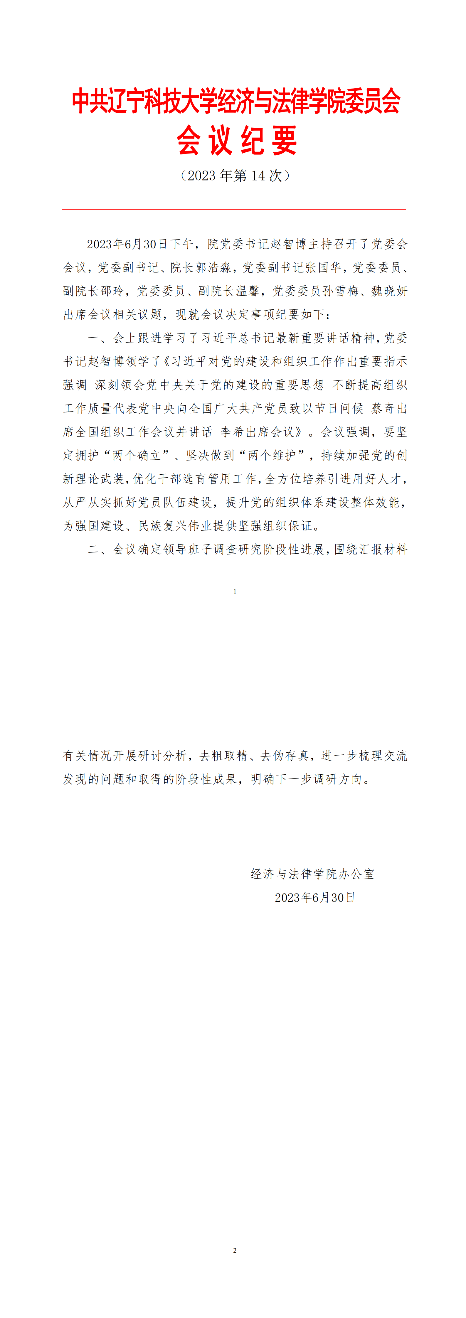 中共多宝官网经济与法律学院委员会会议纪要(2023年第14次)