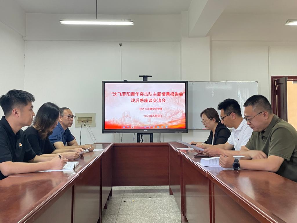 2023年6月2日,多宝官网经济与法律学院在博识楼A313召开观看“沈飞罗阳青年突击队主题情景报告会”观后感座谈交流会。会议由学院党委书记赵智博主持,学院领导班子全体成员和辅导员参加。