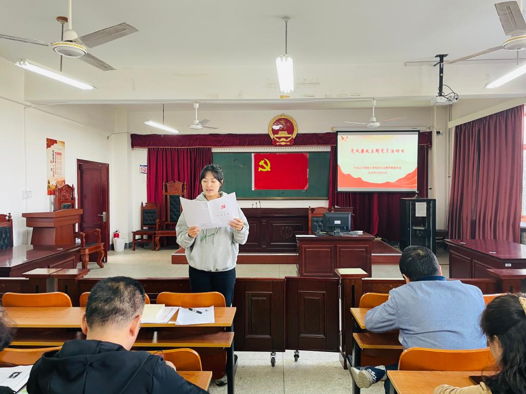 为深入学习贯彻党的二十大精神,切实加强党风廉政建设,落实立德树人根本任务,营造风清气正的良好育人环境,经法学院10月10日于博识楼A402开展了党风廉政建设专题党日活动。院党委书记赵智博主持本次活动,经法学院全体师生党员参加。