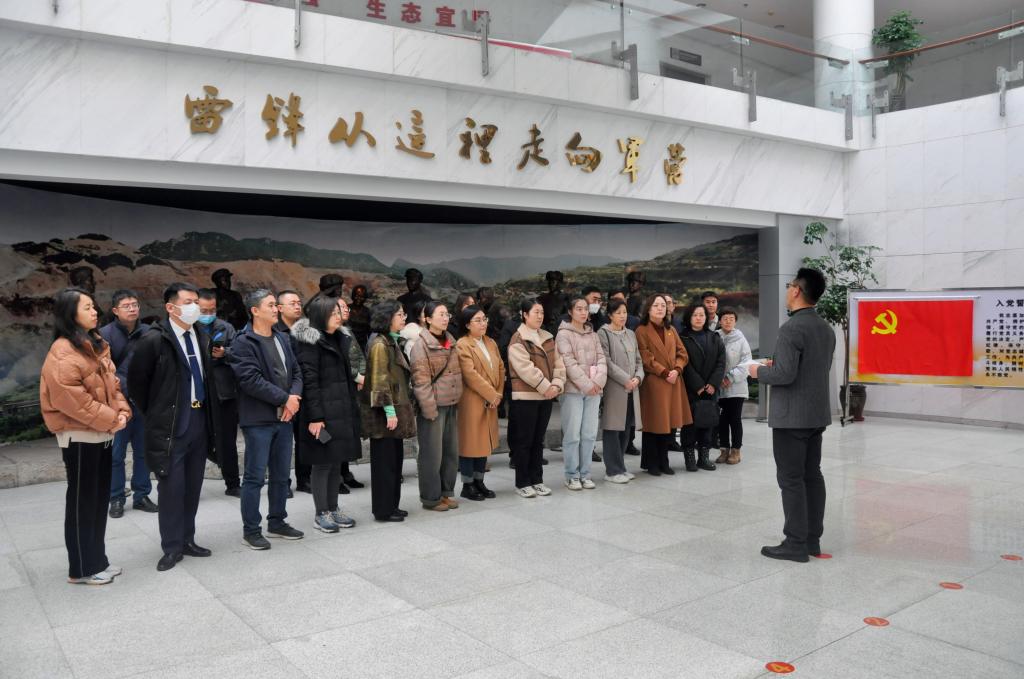 到达纪念馆后,在讲解员的带领和讲解下,全体教职工认真聆听了雷锋同志的生平事迹、工作经历及获得的主要荣誉等。通过一张张珍贵的老照片、一本本泛黄的书籍、一件件真实的物品,老师们追寻先烈足迹,深刻领会雷锋同志助人为乐、无私奉献、做一颗永不生锈的螺丝钉的精神和把践行共产主义理想化作自觉行动的人生态度。通过参观,大家深刻地从雷锋精神中获得了人生的启迪,汲取了奋进力量。贾丹、郭威、陈辛迪、张鹏飞4名青年教师代表发言,分享了本次参观的感悟,纷纷表示今后一定要以雷锋为榜样,把全心全意为人民服务的精神贯彻落实到实际工作和生活中去,以立德树人为己任,努力践行“为党育人,为国育才”,立足岗位,再建新功。学院党委书记赵智博带领教师党员在雷锋雕像前重温入党誓词,大家举起右拳庄严宣誓,用铿锵有力的声音抒发忠于党、跟党走的决心,在誓词里感悟信仰力量,汲取前行动力。