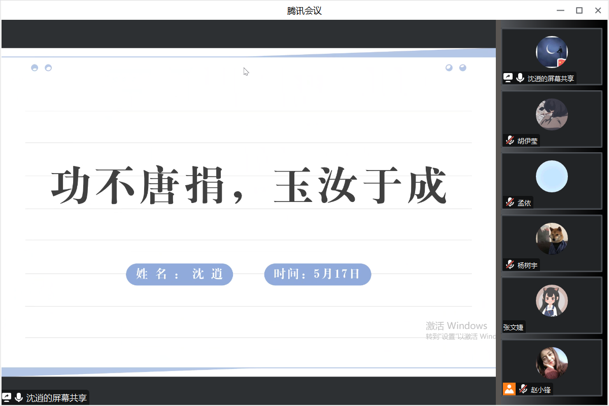 5月17日,经法学院于线上召开“功不唐捐,玉汝于成”研究生考公经验分享会。会议邀请多宝官网第十二届研究生会主席团成员沈逍做考公经验分享,经法学院2022级全体研究生参会。