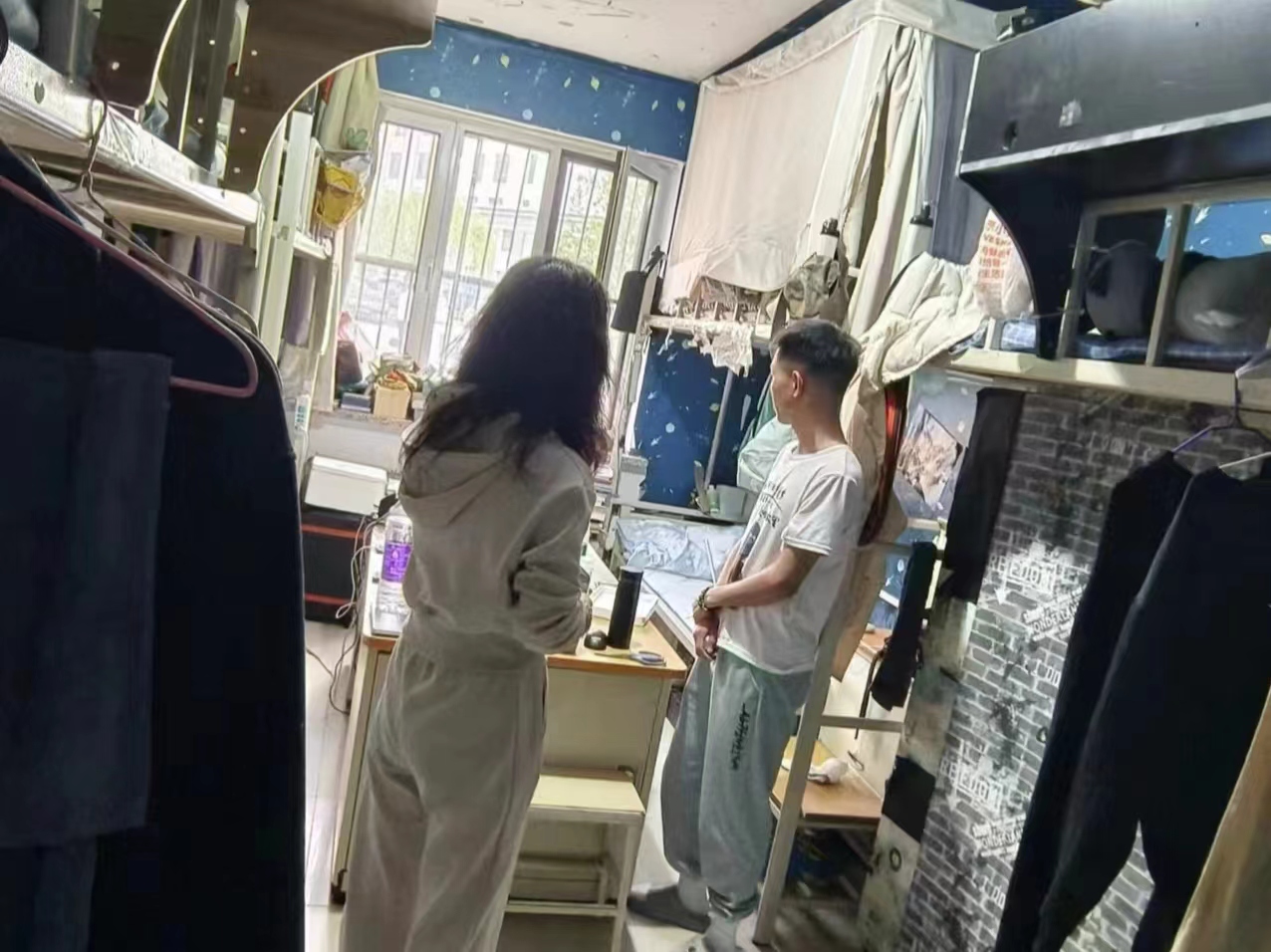 走访期间,辅导员与学生亲切交流,深入了解学生的日常生活和学习状况,倾听学生的心声并针对性地提供帮助和指导。走访过程中,辅导员们检查和解决了学生宿舍中存在的电源线、数据线凌乱等潜在安全隐患,并引导学生进一步提升安全意识,提醒学生离开寝室一定要断电,注意人身财产安全、消防安全和宿舍用水用电安全,自觉遵守宿舍管理规章制度。同时,辅导员们强调,宿舍是学生重要的生活场所,寝室卫生是打造良好居住环境的根本,提醒同学们爱护宿舍环境,时常清理卫生、整理物品,保持地面、桌面、床铺干净整洁,做到每天开窗通风,保证室内空气清新。最后,辅导员鼓励学生明确学习目标,调整好作息时间,养成健康文明的生活习惯,以积极向上的态度面对生活和学习,共同营造良好的寝室氛围。同学们纷纷表示将立足万物复苏的新起点,不负老师期盼,以更饱满的热情投入到学习和生活中。