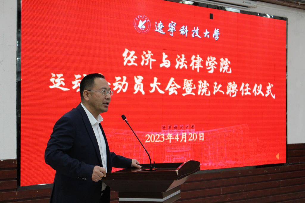 4月20日晚,经法学院于明德楼大学生活动中心召开运动会动员大会暨院队聘任仪式。本次大会由经法学院团委副书记张鹏飞主持,学院党委书记赵智博、党委副书记蔡秀亮、学办主任齐艳萍、团学骨干及2022级全体同学参加了会议。