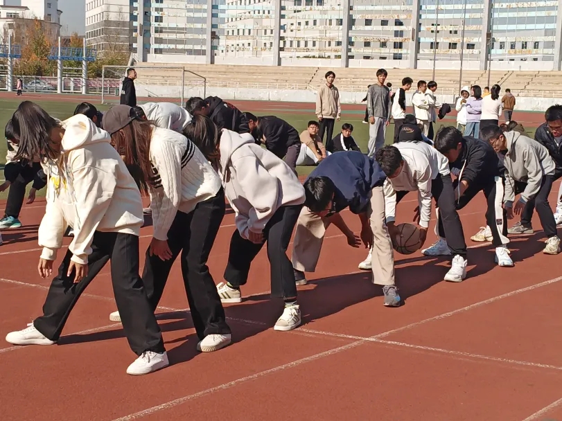 争分夺秒地将球快速地传给下一位同学