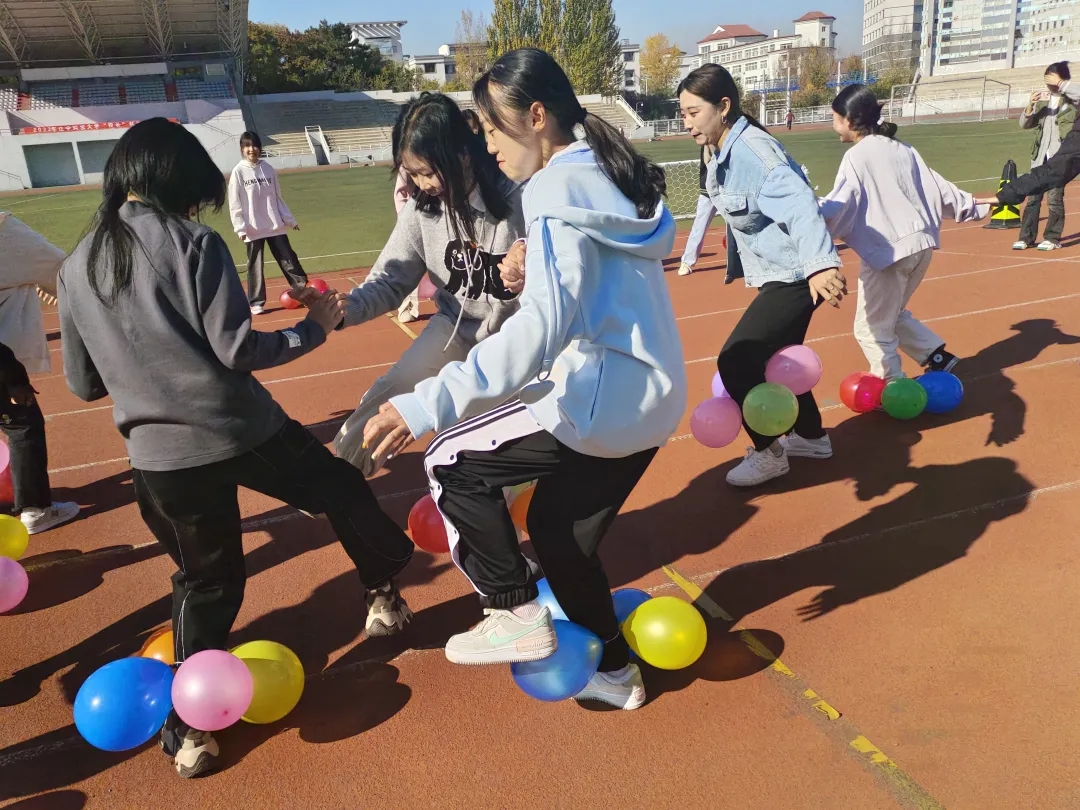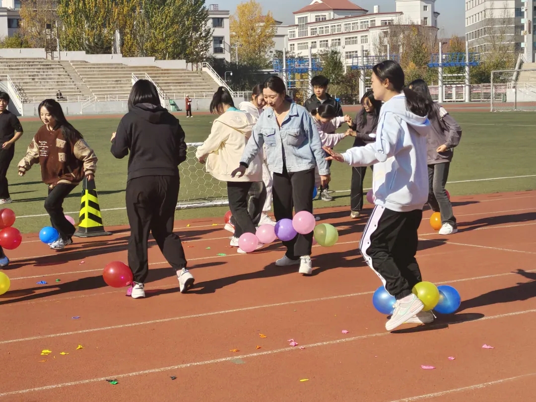 气球爆炸的噼啪声和同学们的欢呼声此起彼伏